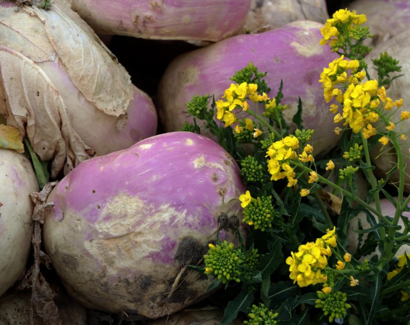 畑の一角に野菜が廃棄してある。野菜たちはさぞかし残念であったろう。それでも花を咲かせ、カブは僕が大好きなくすんだピンクの色を付けている。白菜も中は瑞々しいはず。