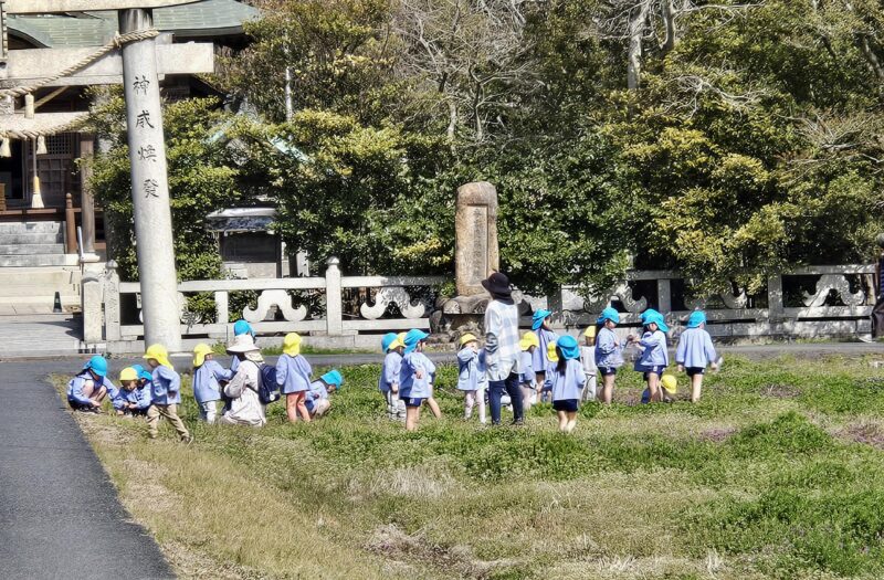 舞い降りたエンジェル 2026/3/23 Diary お宮の前の休耕田にエンジェルたちが草を摘んでいる。散歩中の僕を見かけたエンジェルが「お爺ちゃん花あげる」途端に皆に囲まれ天にも昇る心持であった。「絵爺ちゃんのお家あそこ?」指さした先に、畳一枚ほどの屋根と四報のかべはない簡素な作業小屋てあった。仙人になりきってそこに住めればそれはそれでよいと思った。