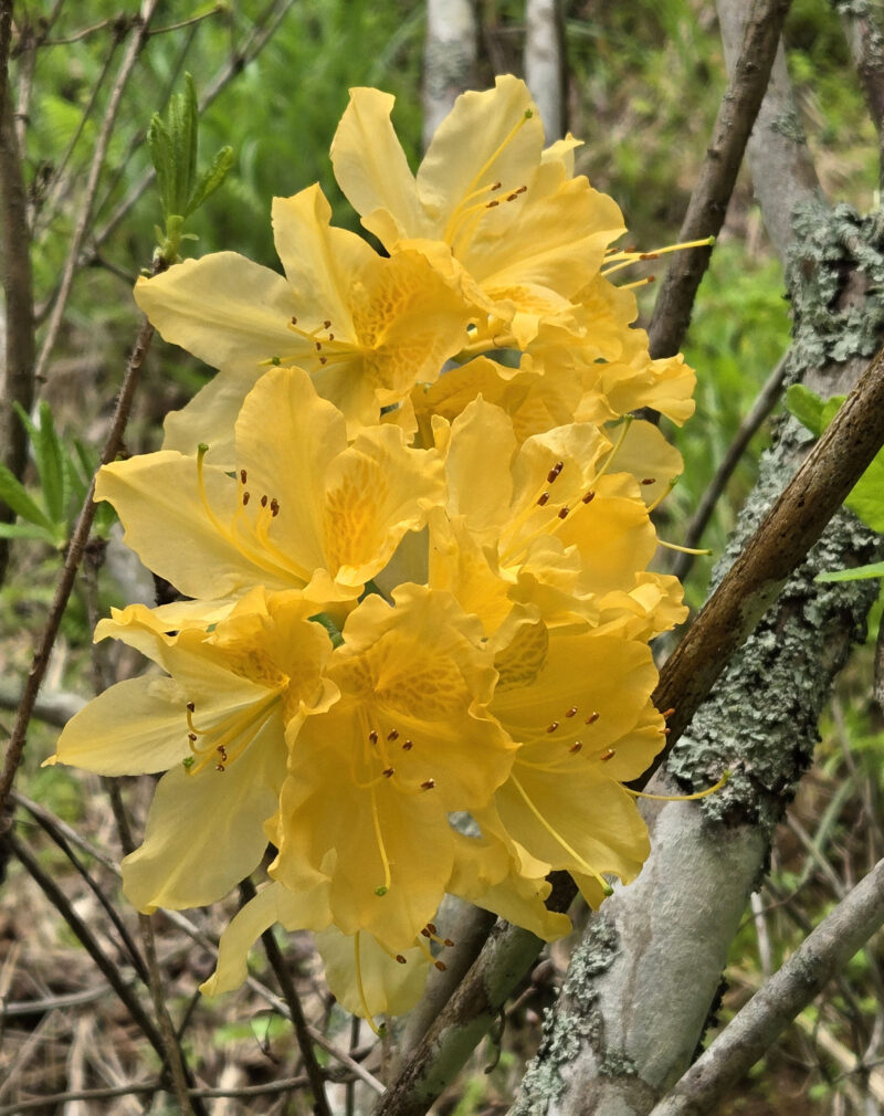 無人の深緑荘 2026/4/27 Diary 最初の山間のアトリエは藁葺きの古民家だった。親友のH君とコツコツと改築し深緑荘と名付けた。傍に民家も無く最適な環境であり、出会うのはサル、猪や狸他であった。数年ここで活動したが漏電が発生したためにここを後にした。15年ぶりに訪ねたが、屋根は抜け落ち傍の銀杏とエゾ松の巨木は枯れて倒れ掛かっていた。誰一人いないシーンとした山間に燃え盛るような黄色い花が印象的であった。
